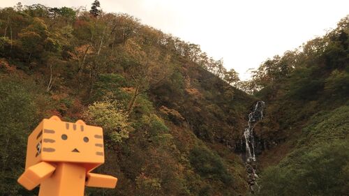 ニャンボーも巡り歩く北海道。2019年の秋ごろに立ち寄ってみたのは白老町の白滝。白老町と伊達市大滝方面を結ぶ峠道、道道86号大滝線の道路からもはっきりと確認できる落差の大きめの滝。