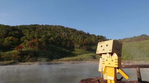ダンボーと歩く北海道、紅葉の季節へと変わり始めた頃にやってきたのはニセコ湯本温泉の大湯沼。ニセコと名前があるけれど、蘭越町の大湯沼。