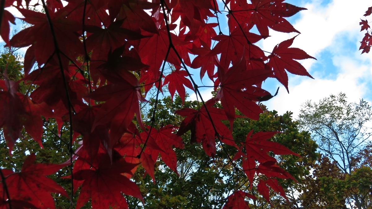 鮮烈な赤から、やわらかな赤まで。黄色い葉もやわらかく繁っていて。