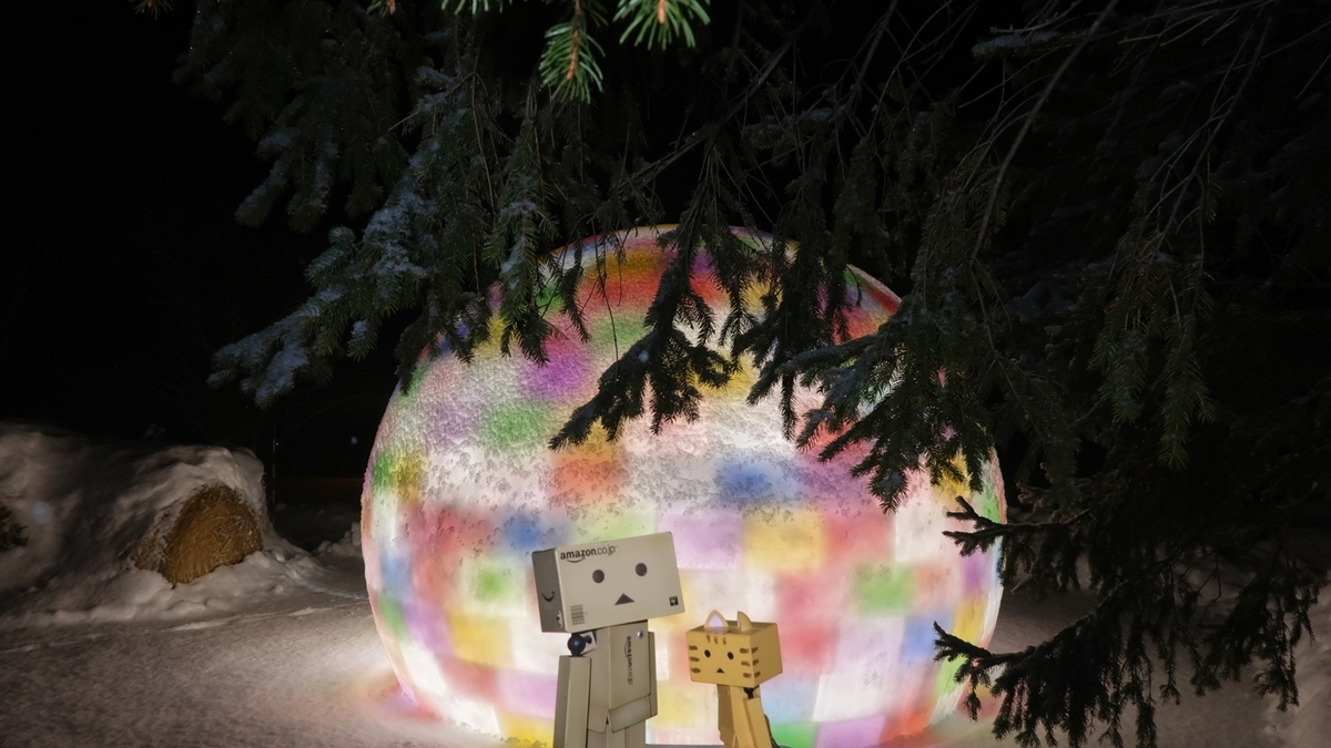 俵真布小学校跡地で開催されている「びえいの冬まつりinチカラノ」。こちらにもきれいなアイスボール。