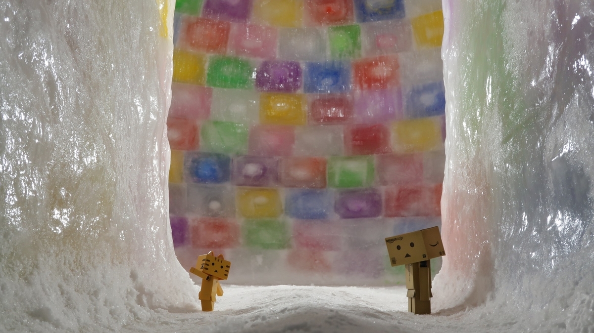 夜のライトアップの姿がとてもきれいだけど、昼間もまた一味違う氷の迫力>