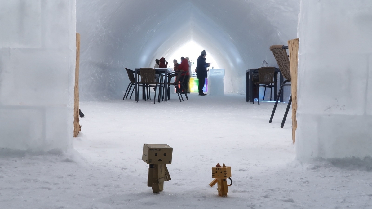 宿泊用の施設みたいで、アイスボールの中には大きなベッド。