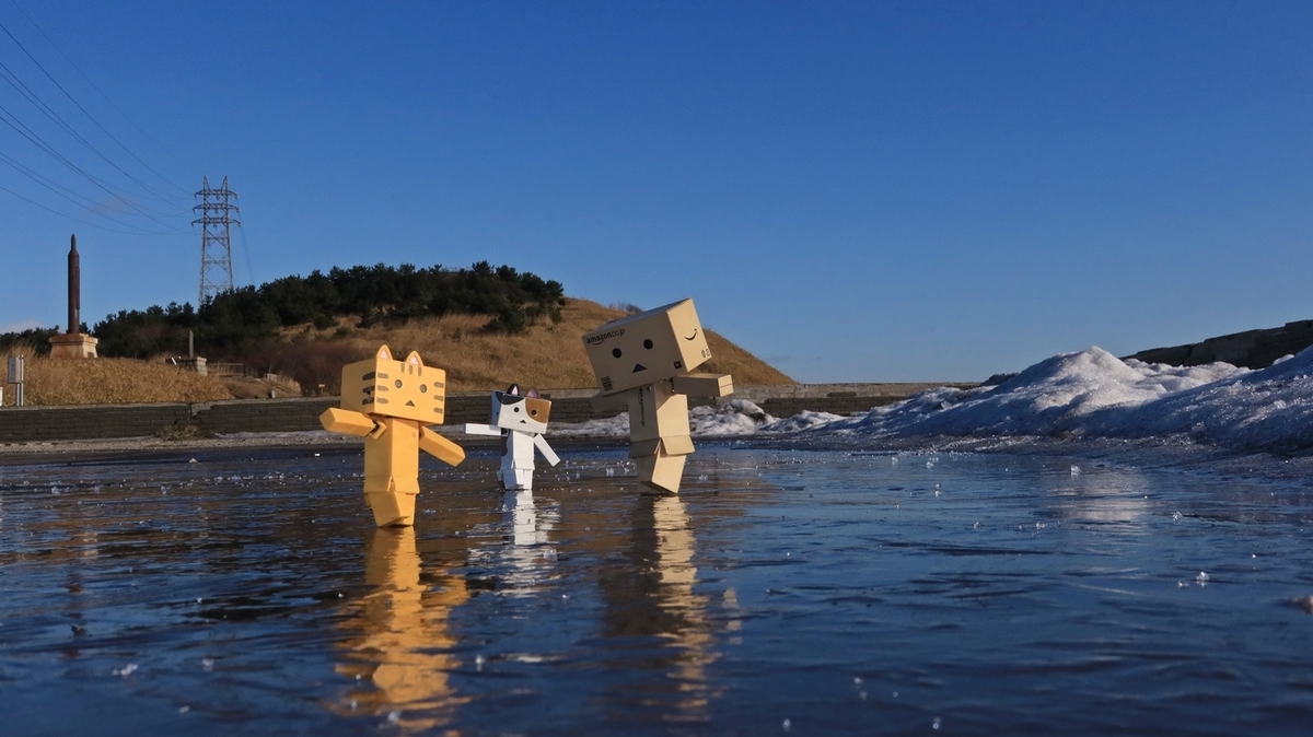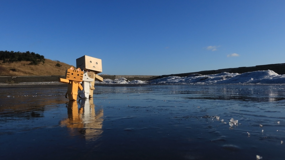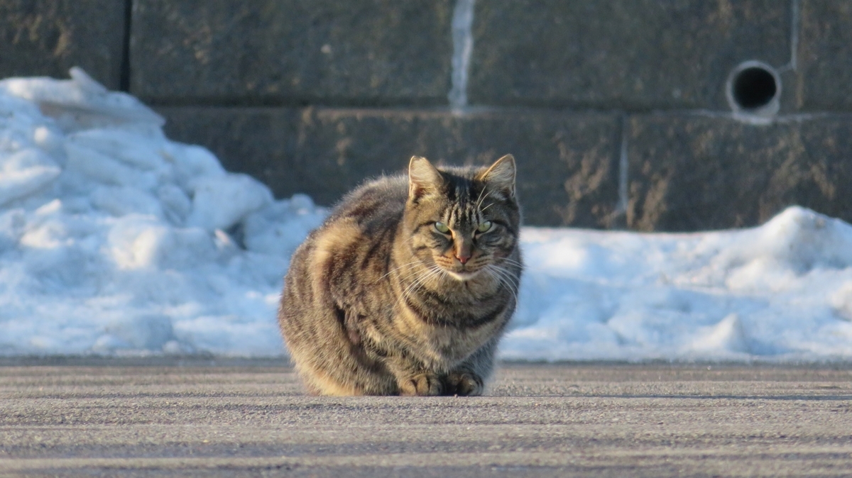 氷の塊が落ちてると思ったら、ネコが新年のあいさつをしあっていました。1匹しか撮れなかったけれど。